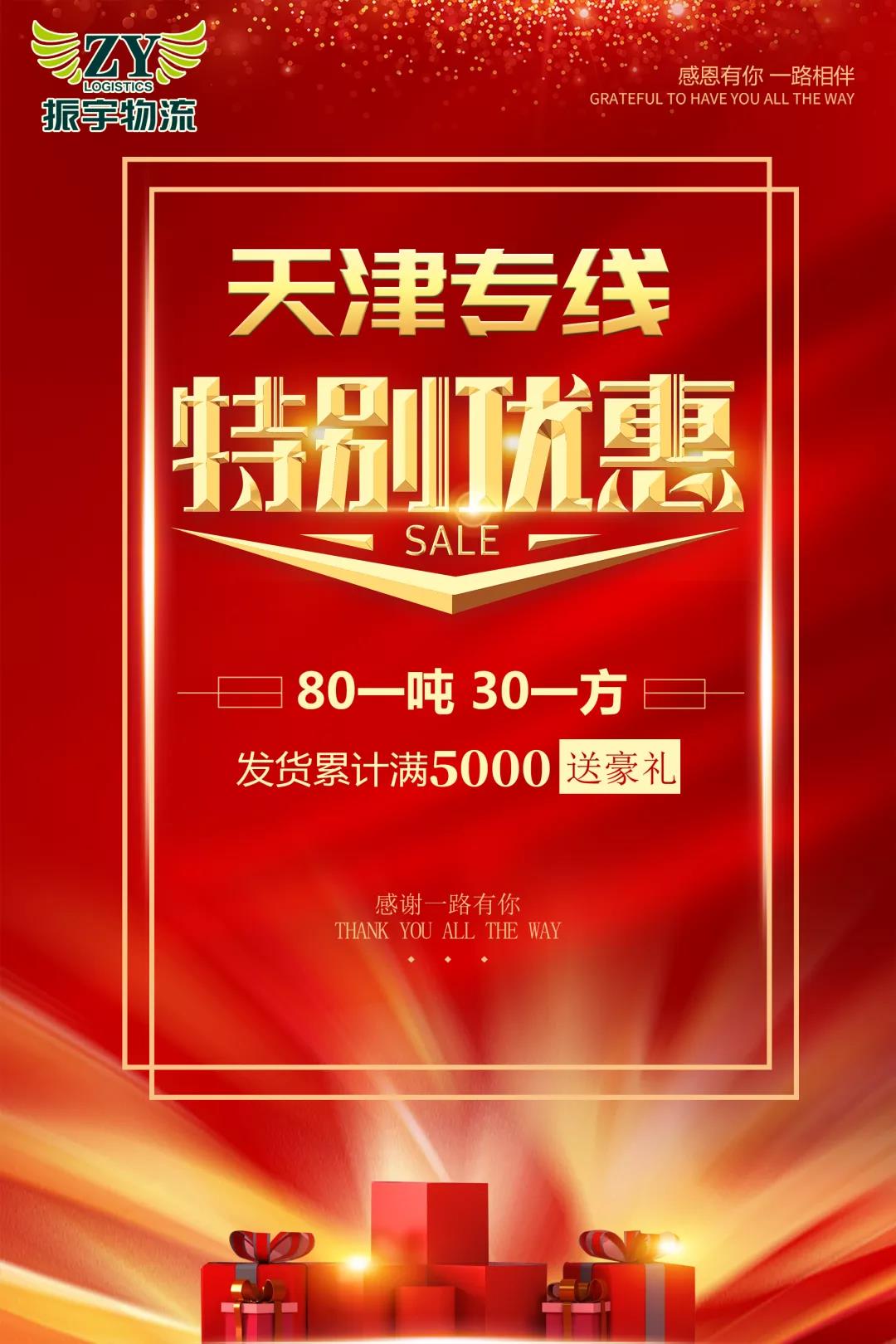 振宇物流天津專線大優(yōu)惠,驚喜豪禮送送送!