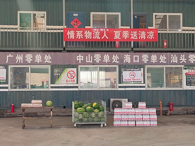 座談交流結(jié)束后,領(lǐng)導(dǎo)們向在高溫肆虐之下辛勤工作、為物流事業(yè)做出貢獻的振宇物流人表達感謝和敬意,囑咐大家在完成工作的同時,要做好防暑降溫工作,并為大家送上了西瓜、礦泉水、毛巾等消暑物品,給辛苦的工作人員帶去一絲清涼怡人。