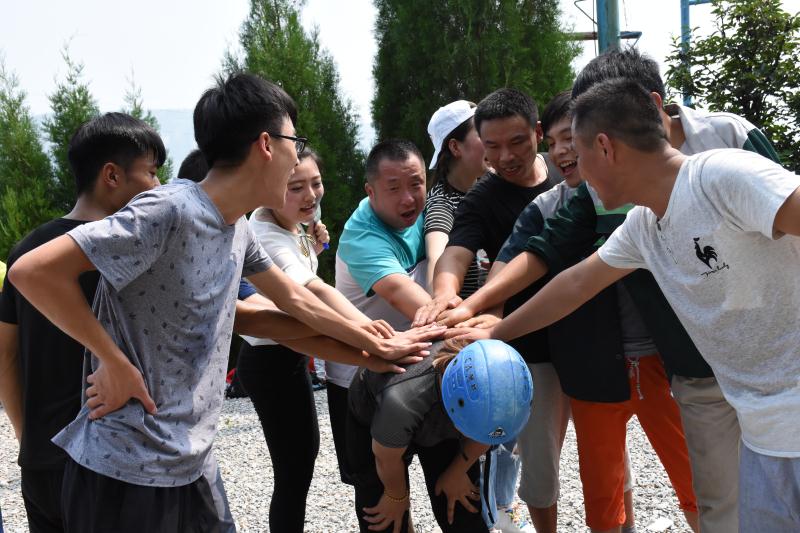 在訓(xùn)練過程中,全體員工被分為三支隊伍并展開了激烈的競爭,8米的高空斷橋,真正的個人挑戰(zhàn),敢于挑戰(zhàn)便是對自己的一大突破,只有勇 于不斷的去突破自己,才能在工作、生活中有所成長,有所改變;所有學(xué)員站在1.5高的背摔臺上背對著大家,身體筆直的倒下,由下面的伙 伴將其接住。面對這個挑戰(zhàn),敢不敢將自己的后背交給隊友?敢不敢充分的相信隊友?如何去建立信任……通過訓(xùn)練活動讓員工們體驗到解 決問題的方法,員工們之間面對同樣一個問題所表現(xiàn)出來的態(tài)度,如何達(dá)到共識,并進(jìn)行配合共同解決。最終大家齊心協(xié)力在規(guī)定時間內(nèi)完 成了超音速、背摔、斷橋、有軌電車、求生墻等眾多項目。
