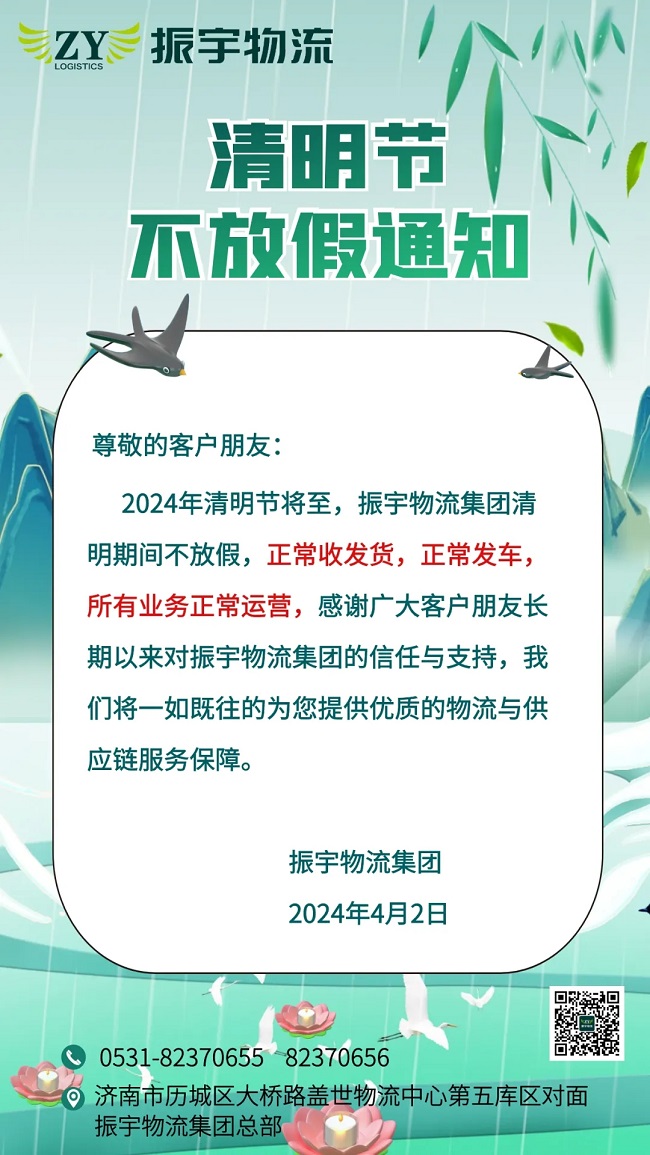 振宇物流集團(tuán)丨清明期間正常運(yùn)營通知