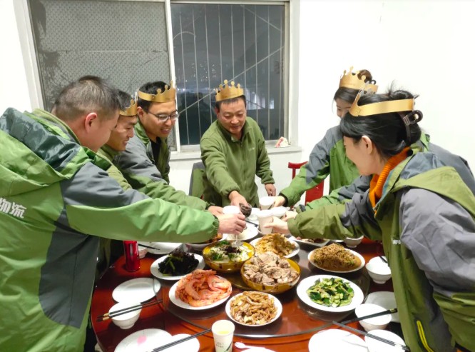 夜幕降臨,溫馨的氛圍延續(xù)到餐桌之上。熱氣騰騰的佳肴陸續(xù)上桌,大家圍坐一堂,暢談工作與生活,分享著彼此的趣事與感悟。推杯換盞間,清脆的碰杯聲交織著歡聲笑語,既是對過往并肩作戰(zhàn)的感謝,也是對未來攜手同行的期許。一張張笑臉、一聲聲祝福,匯聚成振宇物流最溫暖的畫面。