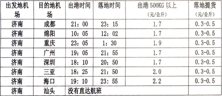 4、出港運費由濟南機場收取,落地提貨費各地機場標準不一,其會據(jù)實收取。
