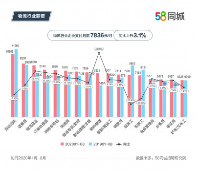薪酬水平也是物流行業(yè)就業(yè)的重要指標(biāo),58同城招聘研究院數(shù)據(jù)顯示,今年1-8月,交通運(yùn)輸、倉(cāng)儲(chǔ)和郵政業(yè)支付月薪達(dá)到7836元,同比上升3.1%。典型職位中,貨運(yùn)司機(jī)支付月薪第一,達(dá)到10808元;送餐員支付月薪排名第二,為9200元;物料管理支付月薪同比上升最快,增幅38%,月薪達(dá)到7531元??梢姡锪餍袠I(yè)崗位薪資與崗位技術(shù)含量、市場(chǎng)需求、勞動(dòng)強(qiáng)度密切相關(guān),技術(shù)含量高、市場(chǎng)需求大、勞動(dòng)強(qiáng)度大的崗位收入更高。