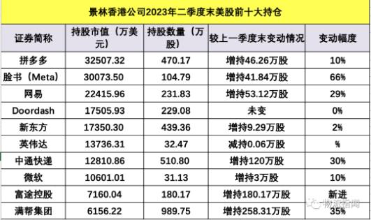 近日,景林資產(chǎn)的海外子公司景林資產(chǎn)管理香港有限公司(GREENWOODS ASSET MANAGEMENT HONG KONG LTD)向美國證監(jiān)會(huì)提交了截至2023年二季度末的美股持倉數(shù)據(jù)(13F文件)。報(bào)告期內(nèi),其美股持倉總市值20.69億美元(約合人民幣149.76億元),環(huán)比增幅約20%。